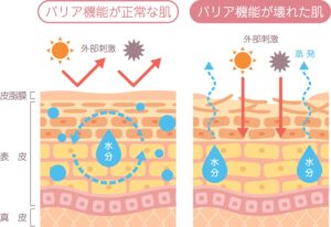 皮膚が乾燥すると、バリア機能はさらに低下しやすくなります。乾燥した肌は、赤みやかゆみが強くなりやすく、少しの刺激でも悪化しやすくなります。