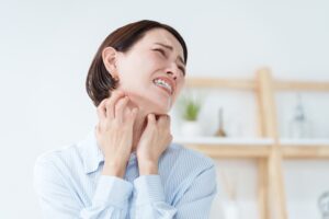 さらに問題になるのが、かゆみと掻きこわしの悪循環です。かゆいので掻く、掻くことで皮膚が傷つく、傷ついたところからさらに炎症が強くなる、という流れが起こると、症状がなかなか落ち着かず、範囲も広がりやすくなります。